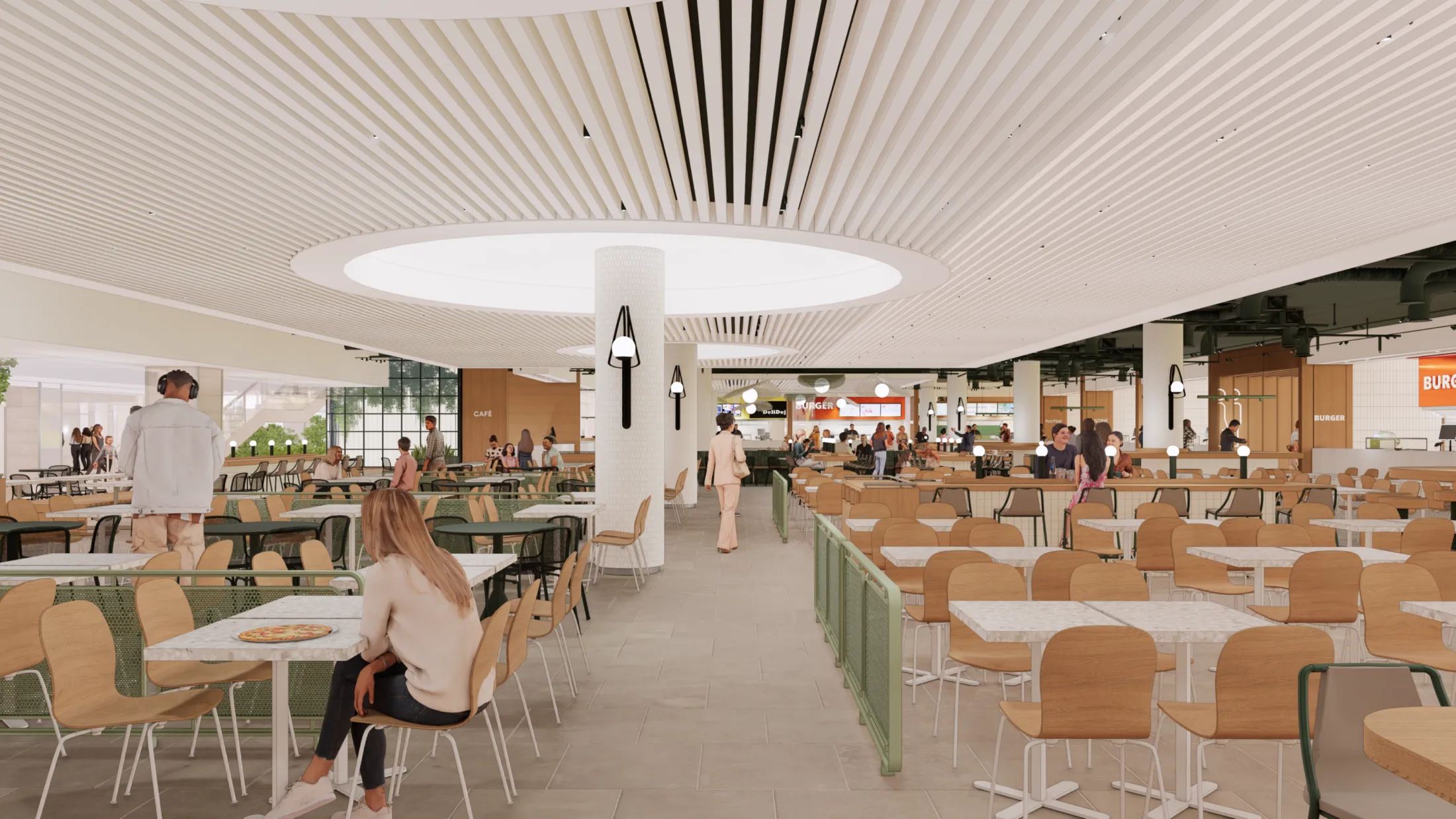 “We wanted to create a lively and welcoming place, both an urban oasis and a vibrant gathering space, where light and greenery complement the energy of Centre Eaton de Montréal and the downtown core. This convivial atmosphere nods to the former Terrasses while reinterpreting them in a contemporary experience,” says Anne Marie Bouliane, Associate Architect.