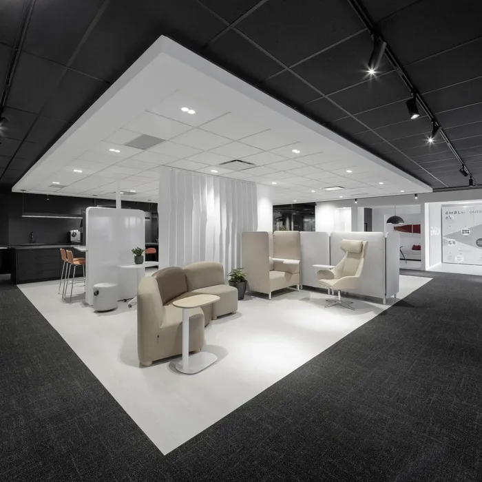 The renovation of the EMBLM Québec showroom was guided by a clear vision: to transform an existing space into a compelling environment, capable of reflecting the company’s contemporary identity while serving as an immersive demonstration tool.