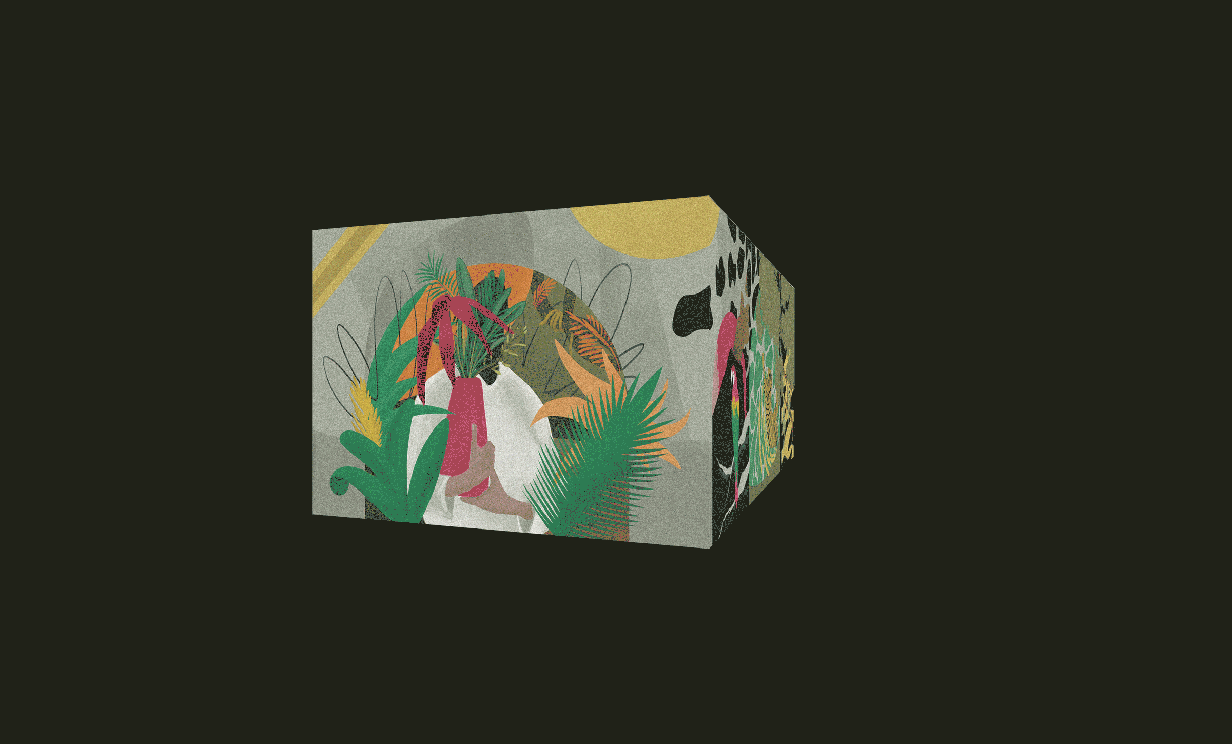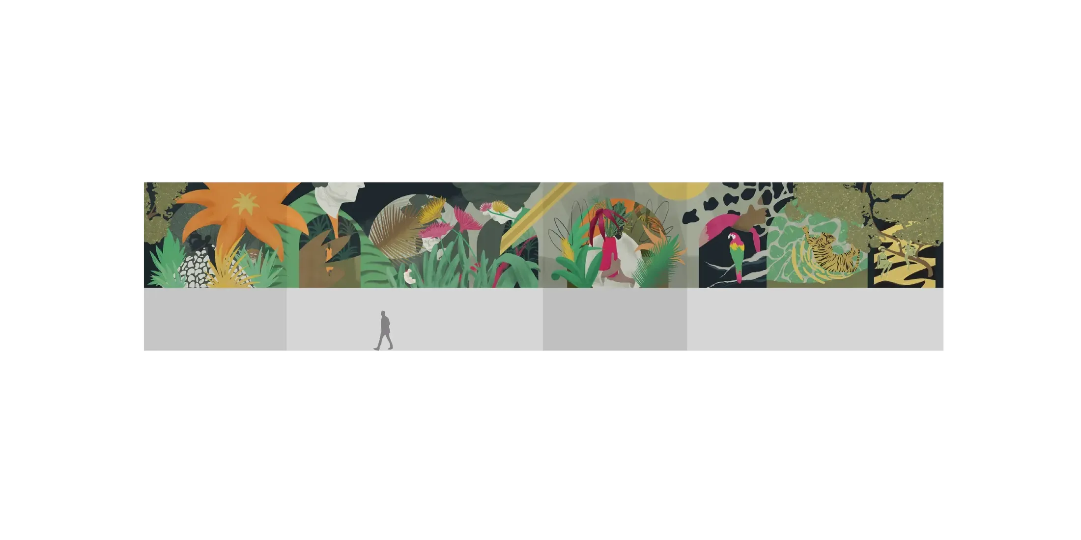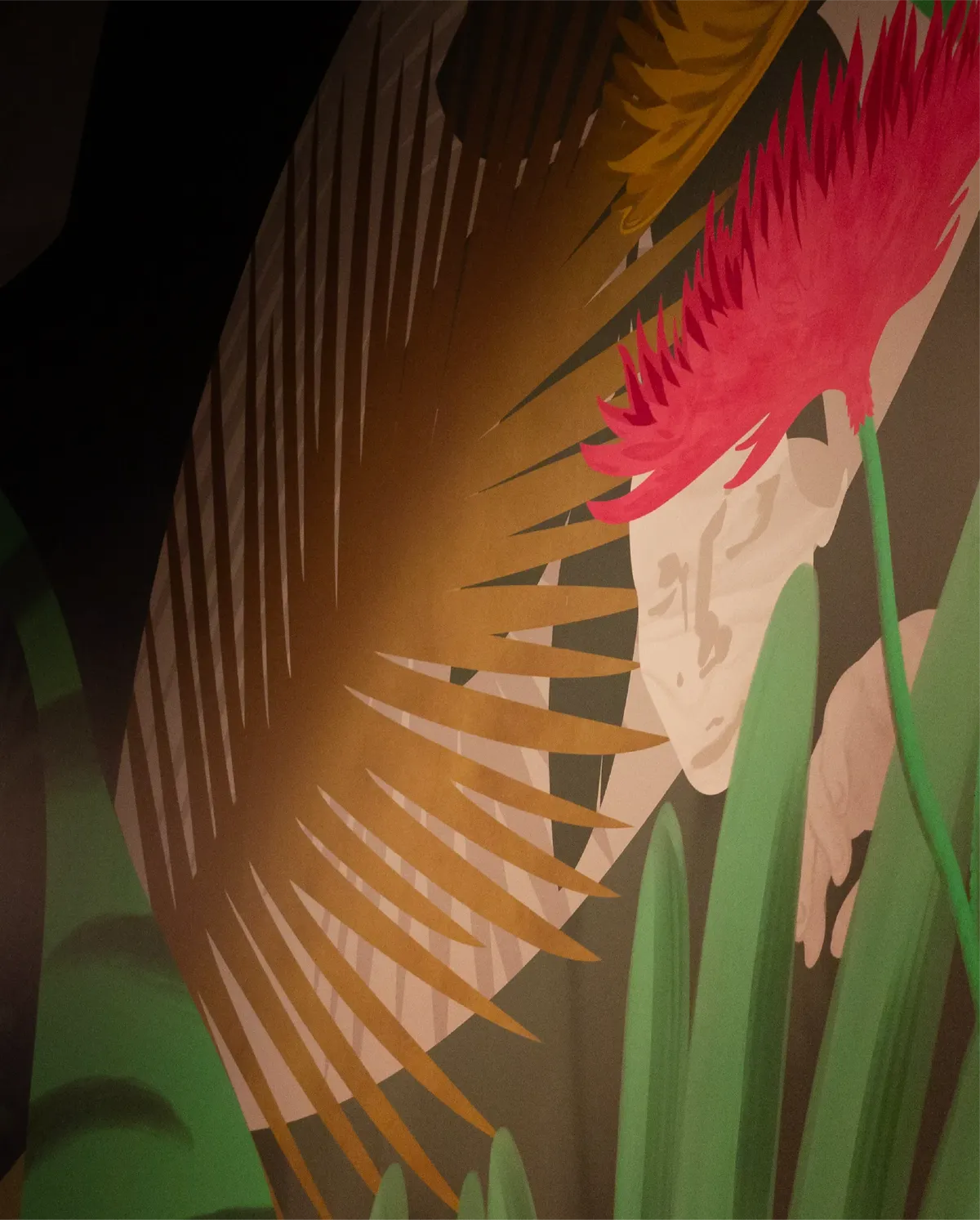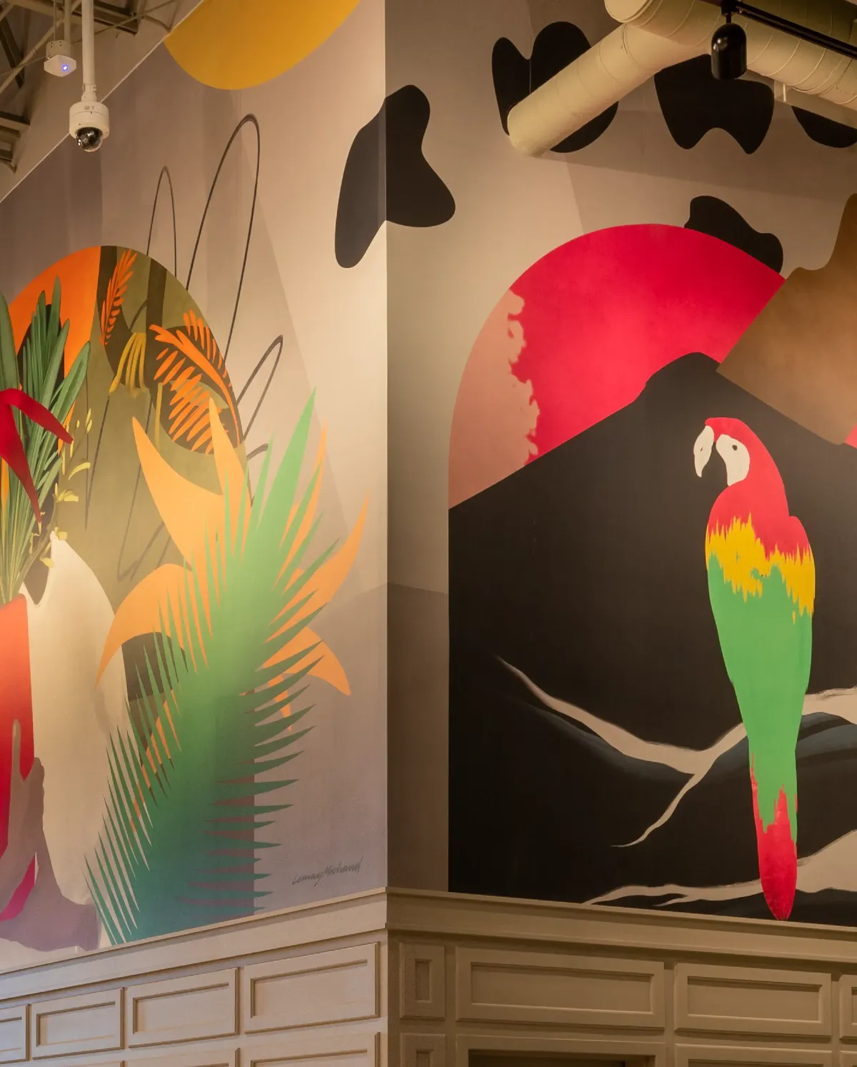 Its motifs blend surreal details with touches of jungle vegetation, integrated subtly so that they harmonize with the architecture while still catching the eye with their originality. Designed to reveal itself gradually, the mural offers new perspectives on each visit, acting as both a catalyst for imagination and a starting point for reflection.
