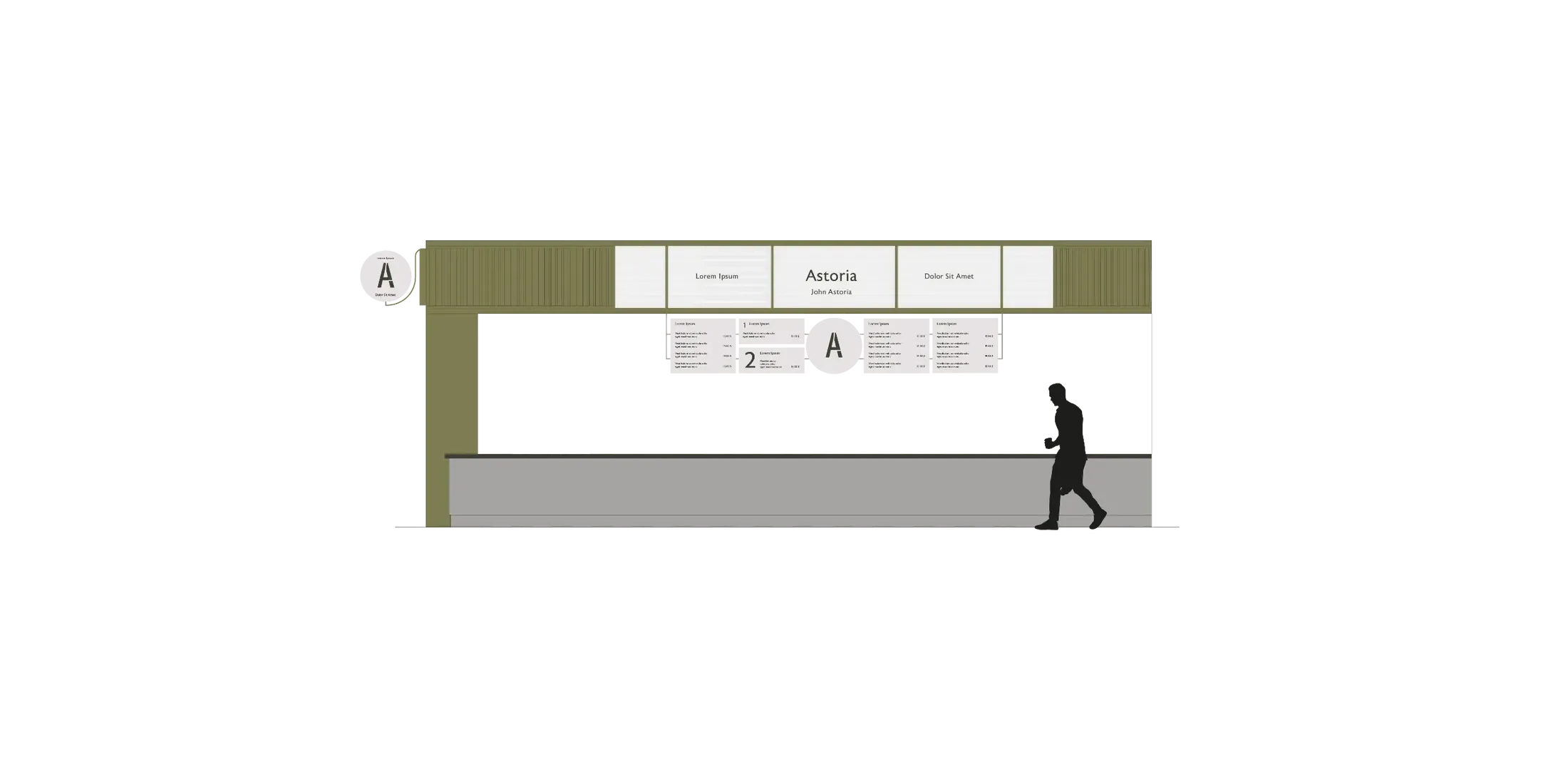 The menus were designed to be fully modular and adaptable to each kiosk’s needs and preferences. Mounted on a modular framework, multiple panels are available, allowing each vendor to compose its own unique display.